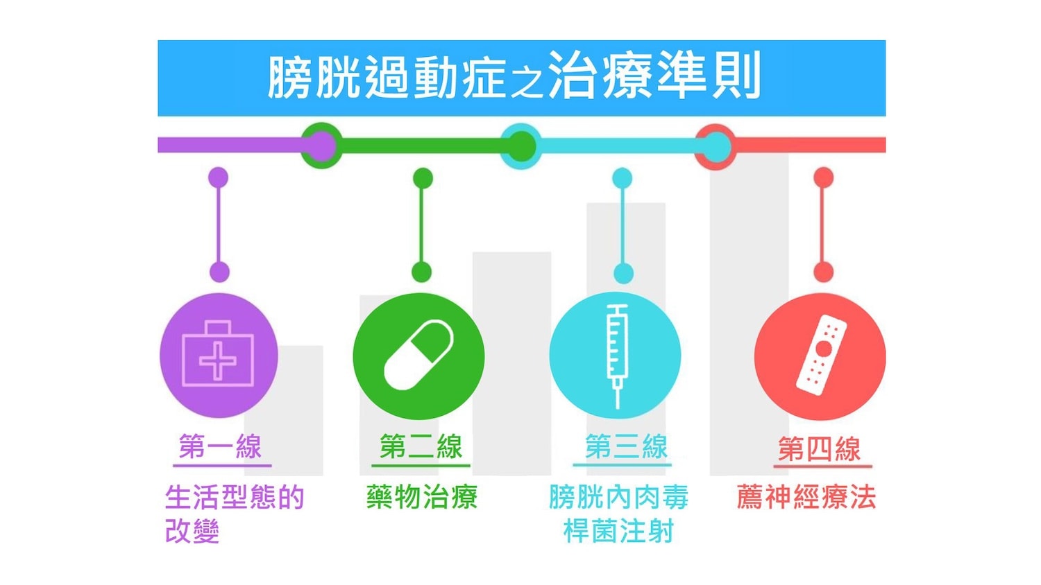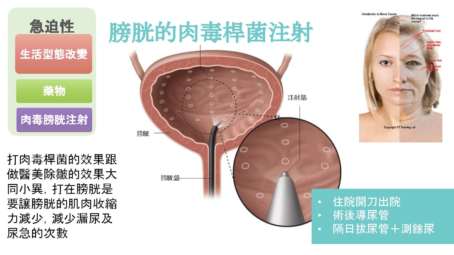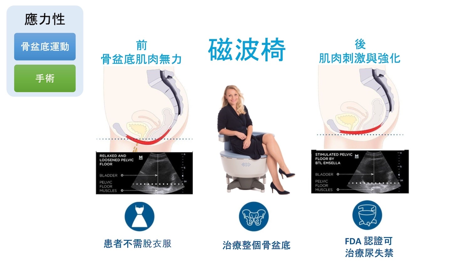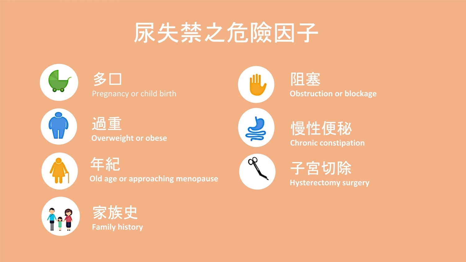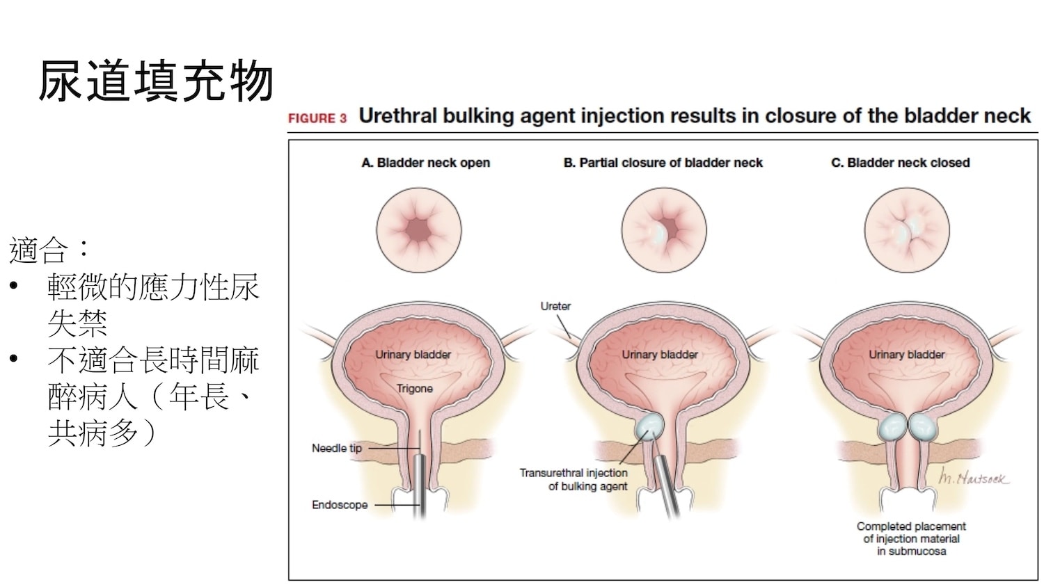 • 急迫性:忍不住尿意時漏尿,藥物為主要治療
